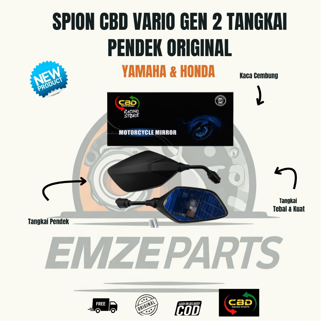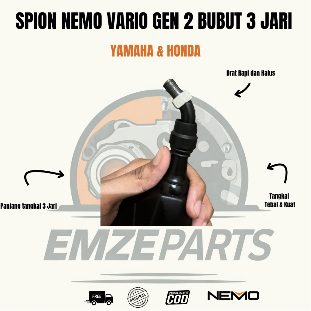 Spion Nemo Vario Gen 2 Original Bubut 3 Jari Tangkai Pendek Tanpa Adaptor PNP Honda & Yamaha