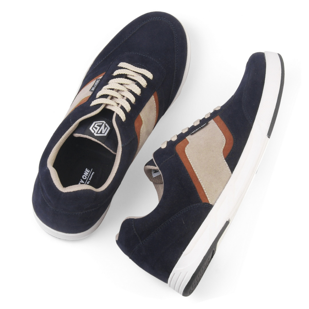 [PROMO] Sepatu Pria Navy Kombinasi Crem Suede Leather Sintetis Premium