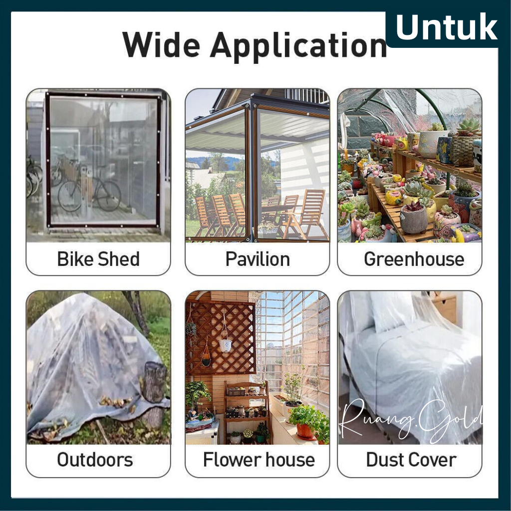 Terpal Plastik Bening Transparan Anti Air – Plastik UV Tebal Untuk Tanaman, Teras & Mobil
