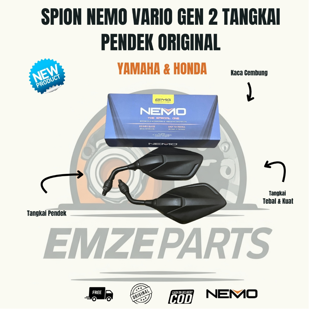 Spion Nemo Vario Gen 2 Original Bubut 3 Jari Tangkai Pendek Tanpa Adaptor PNP Honda & Yamaha
