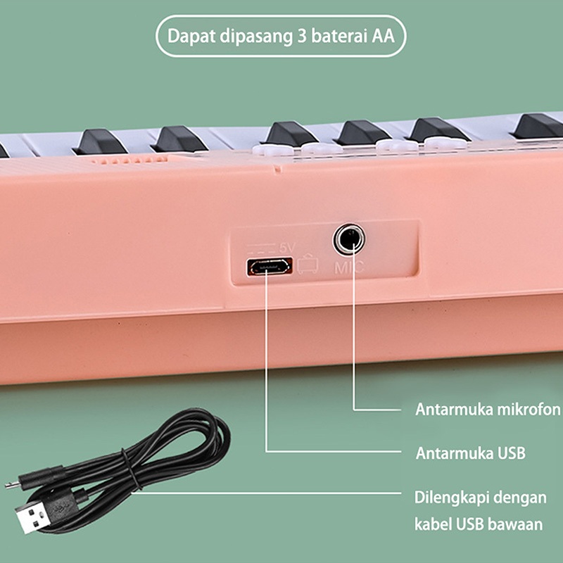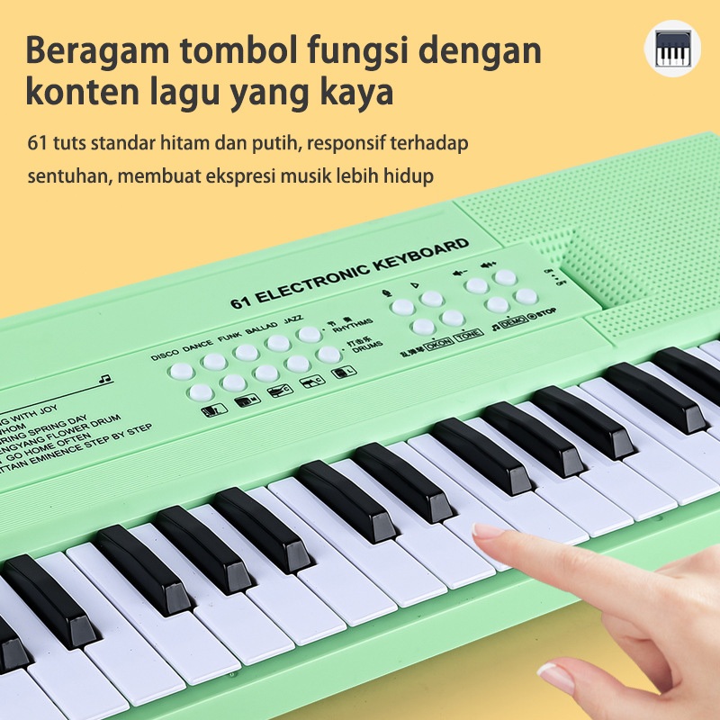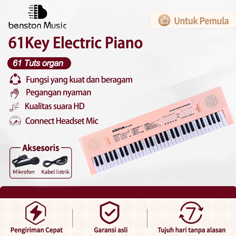 Benston Music - Piano Elektronik 61 Tuts Multifungsi untuk anak, cocok untuk pemula, dilengkapi dengan mikrofon, pengisi