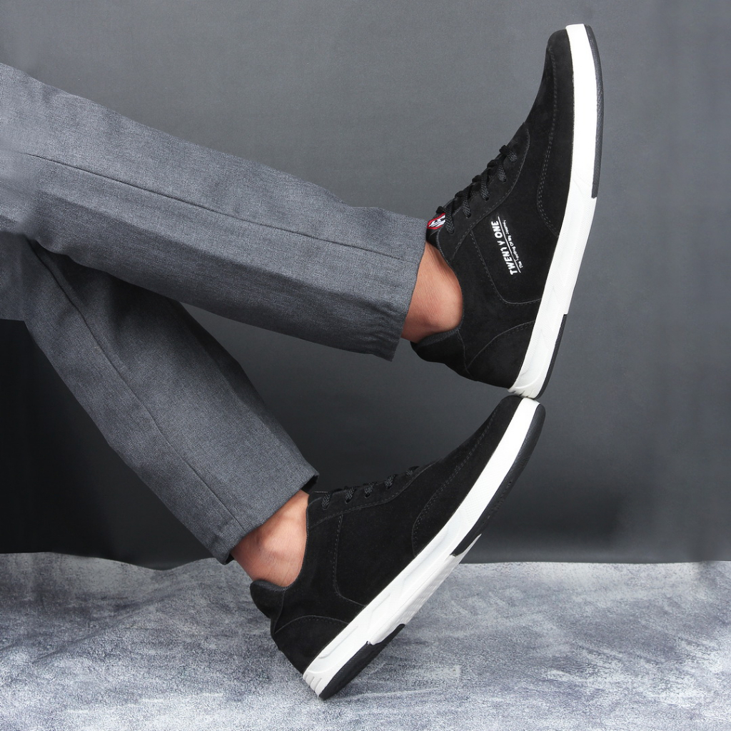 [PROMO] Sepatu Pria Sneakers Full Black Suede Leather
