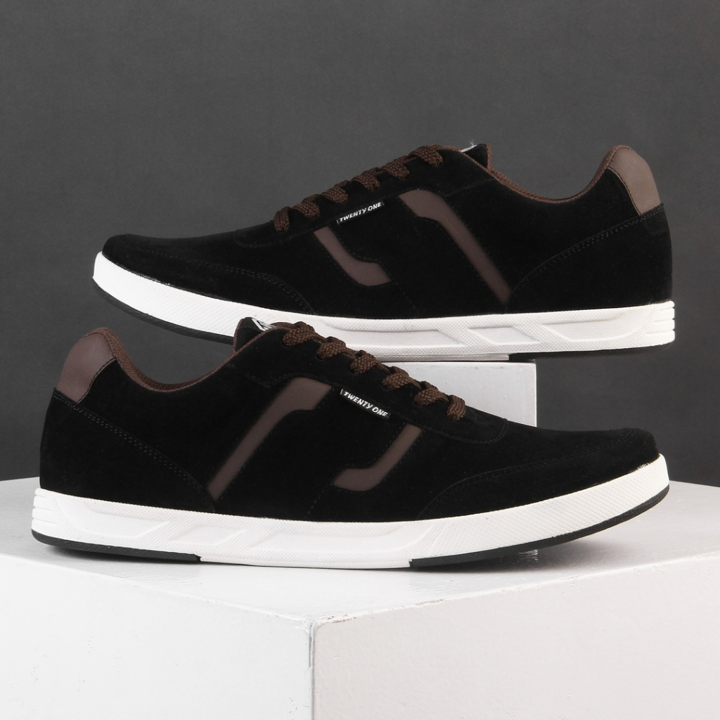 [PROMO] Sepatu Pria Suede Hitam Kombinasi Coklat Keren Kekinian