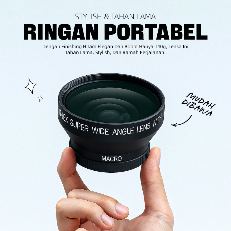 KiTBEEZ KP-2/KP-4 Lensa 52mm Wide Angle Lens 0.45x + Macro Lens for Canon/Nikon/Sony/DSLR