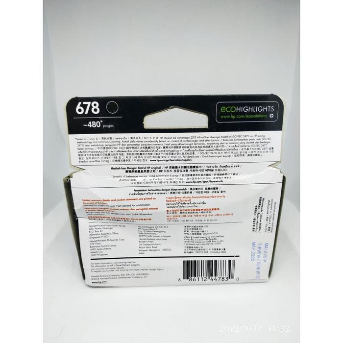 TINTA HP INK 678 BLACK CARTRIDGE ORIGINAL GARANSI RESMI