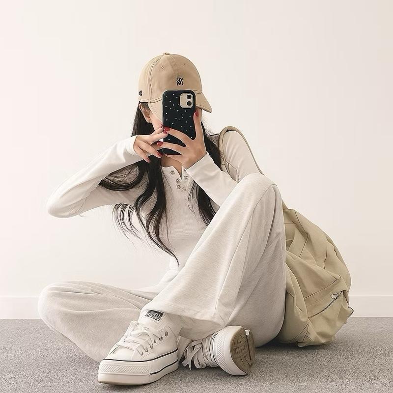 Sweatpants Wanita Pria Oversize High Waist Adem Sweatpants Loose Highwaist Celana Panjang Daily Wanita Nyaman Soft