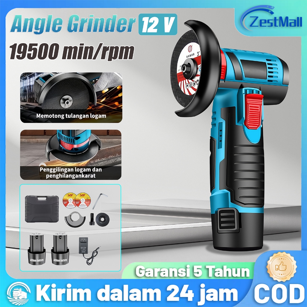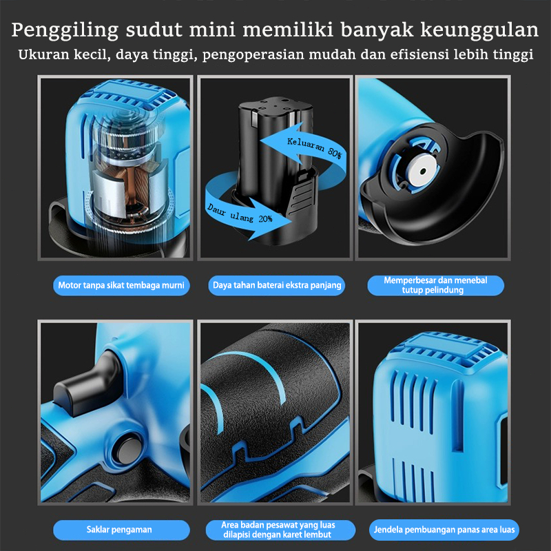 Angle Grinder mini 12V Cordless Brushless Baterai litium 3inch Mesin Gerinda tangan-Tangan Alat Pemotong Penggiling Sud