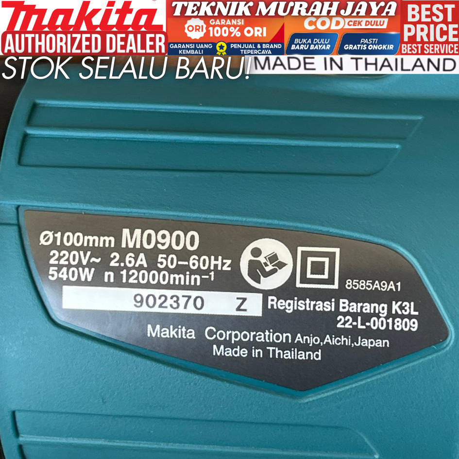 MAKTEC MT90 MAKITA M0900B Mesin Gerinda Tangan 4 inch Gurinda Angle Grinder 540 W Thailand Asli