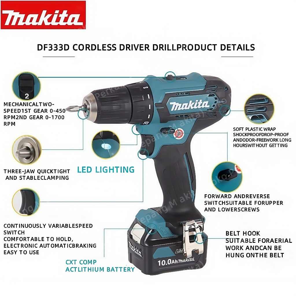 【Garansi lokal di Indonesia】Makita DF333D 36V Bor Impact Cordless Bor Cordless Impact Drill Beton Impact Drill Makita Ra