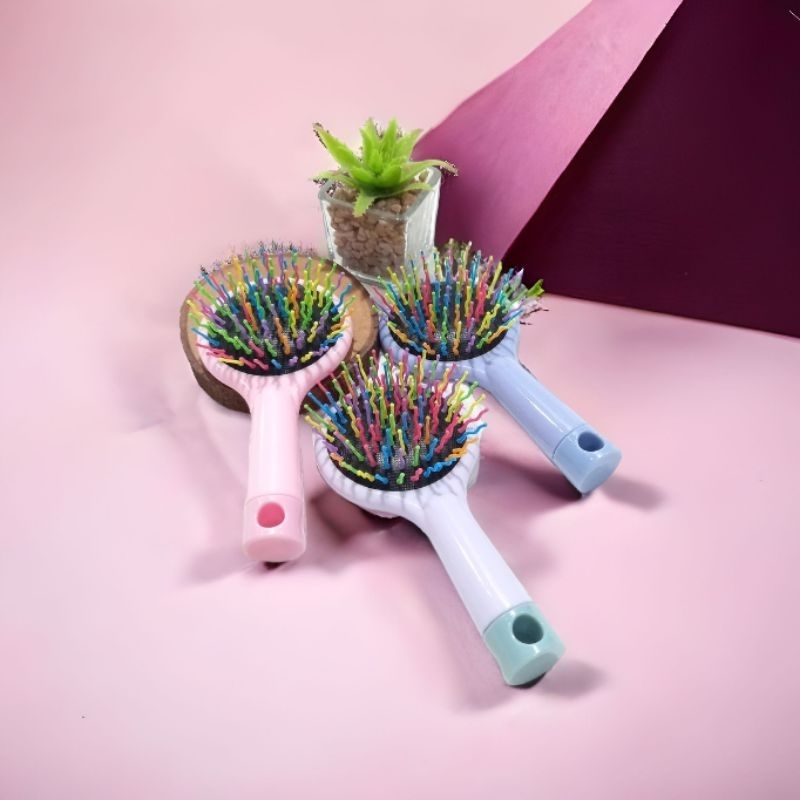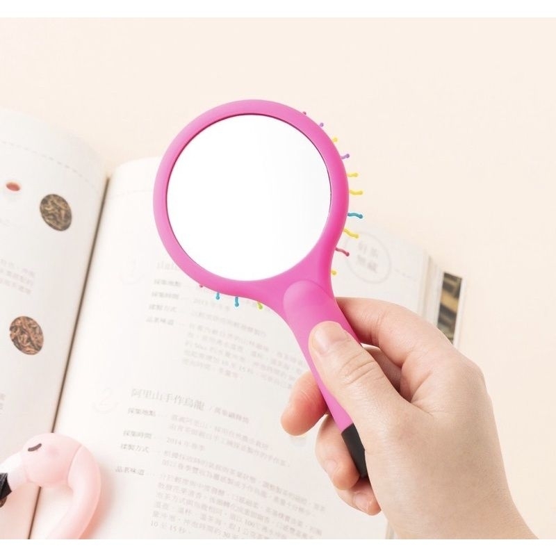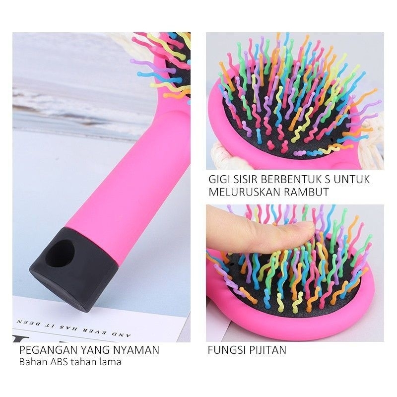 Sisir rambut model bulat kaca anti karat / Sisir rambut gagang anak perempuan + kaca
