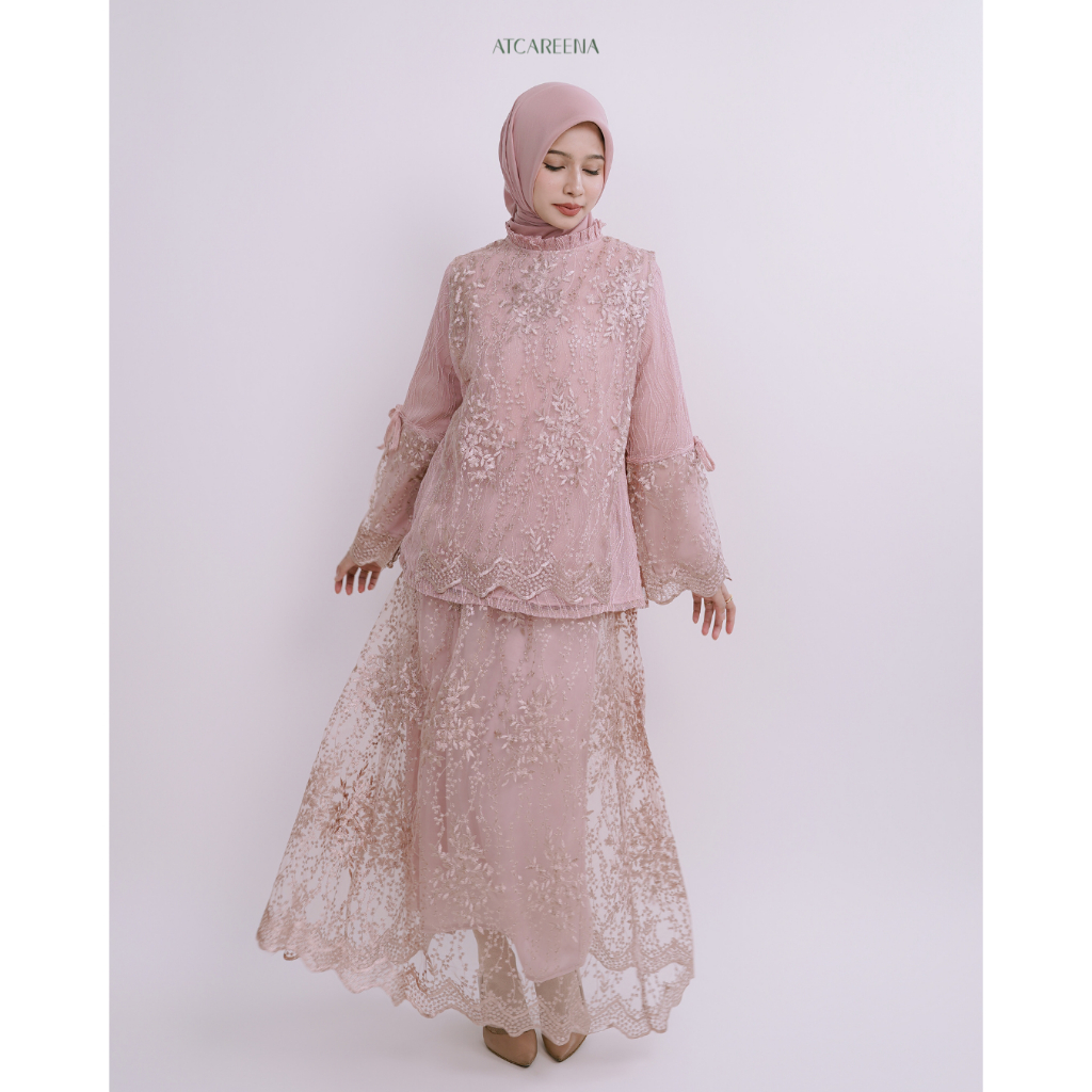 Zaira Oneset Dress Brukat - Setelan wanita muslim - Setelan lengan panjang - Dress panjang - Setelan pesta - Setelan wanita