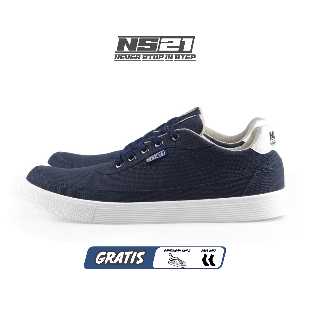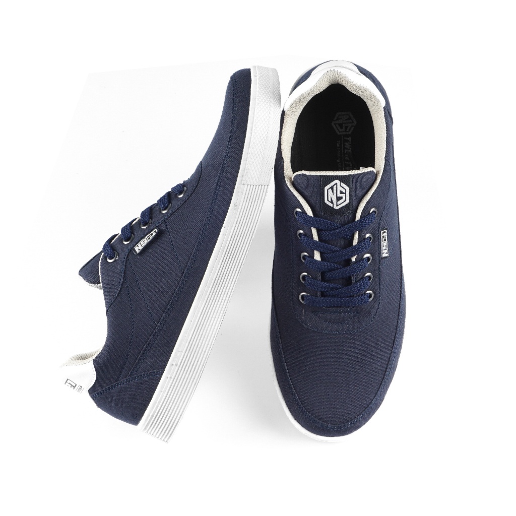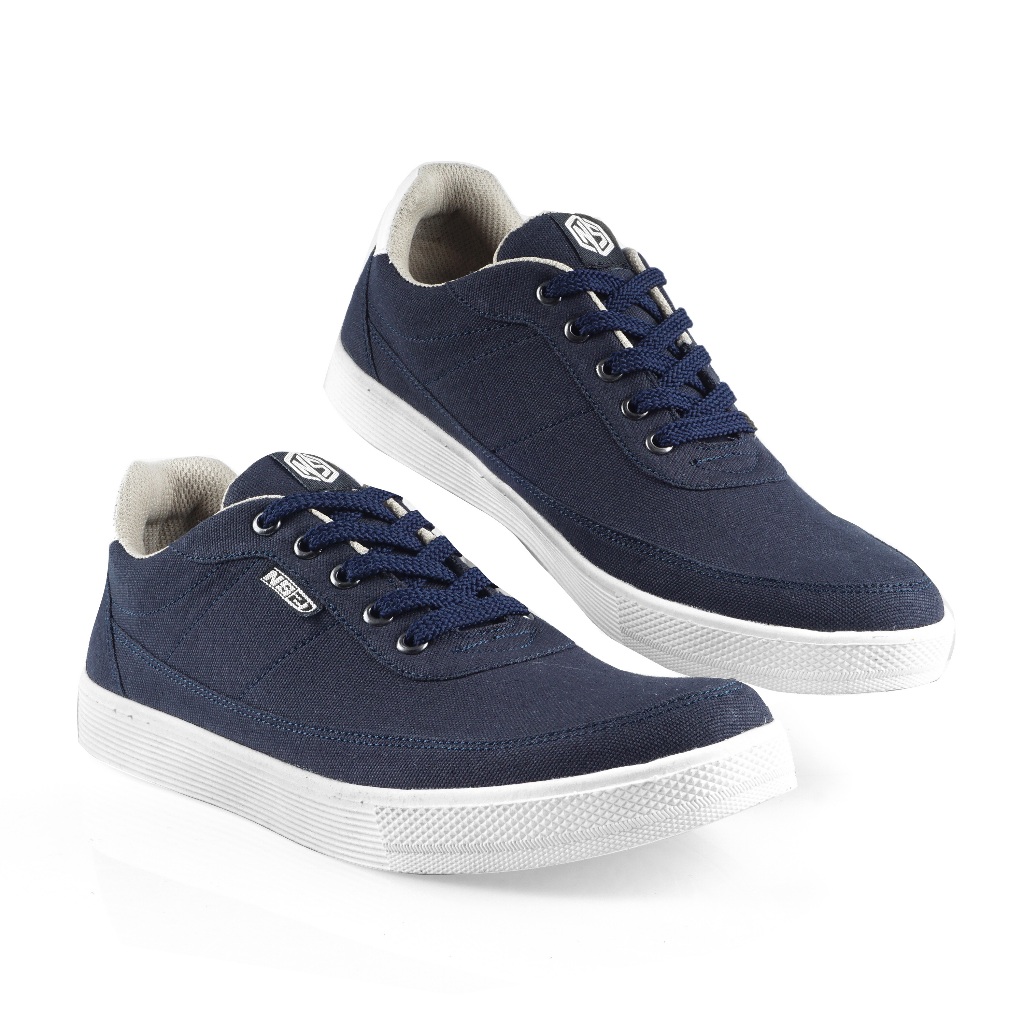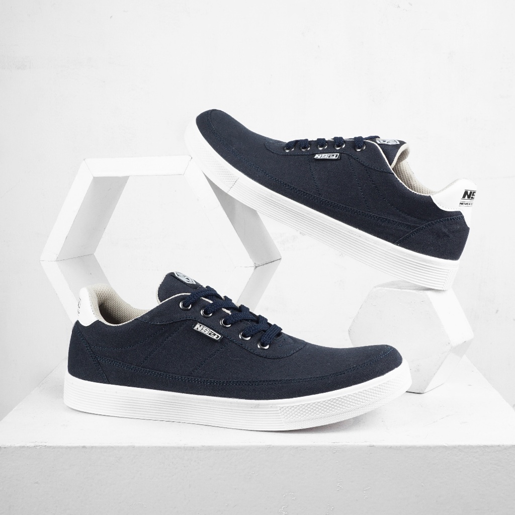 [PROMO] Sepatu Pria Sneakers Kasual Premium Bahan Kanvas Ervin Navy White