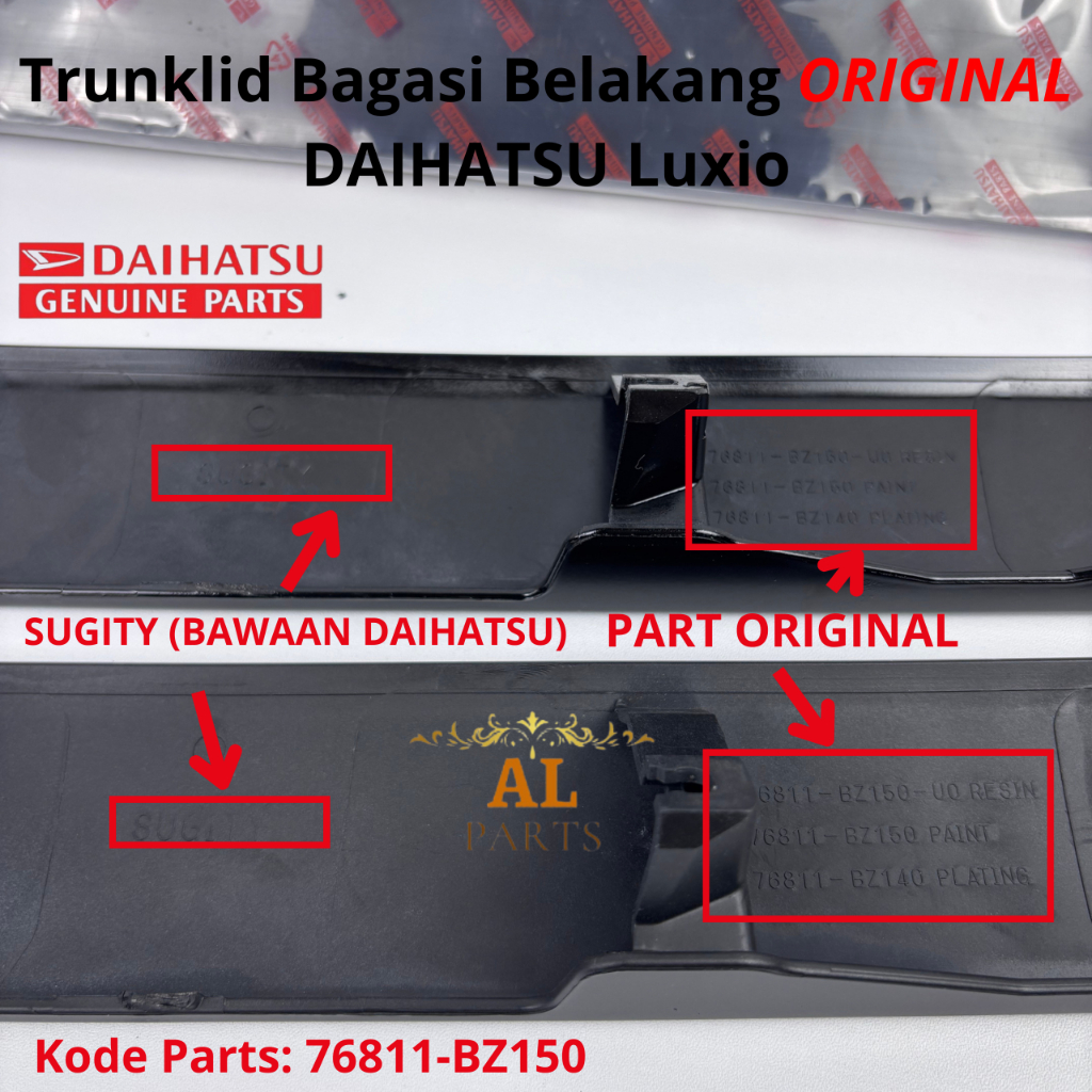 Trunklid Bagasi Belakang Original Daihatsu Luxio Kode Part 76811-BZ150/ Garnish List Pintu Bagasi Di Atas Plat Nomer Lux