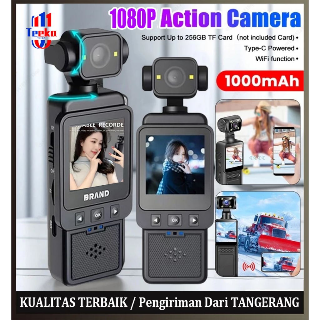 [TEEKA A1] 1080P WiFi Action Kamera Pocket Vlog 270° Rotasi Lensa Mini Camcorder Dash Cam Police Body Motorcycle Bike Motion Camera
