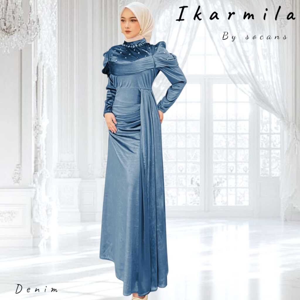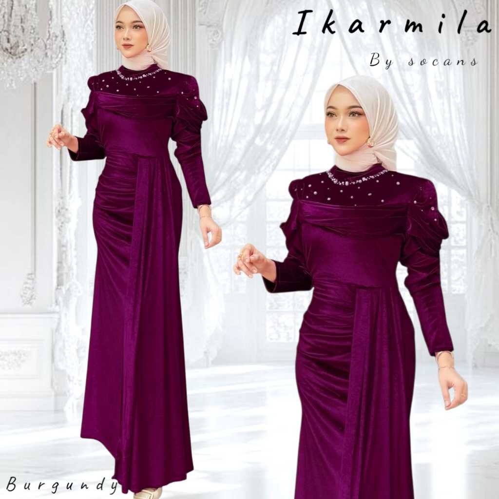 iKARMILA gamis mermaid bludru et mutiara utk pesta kondangan lamaran wisuda seragam bridesmaid