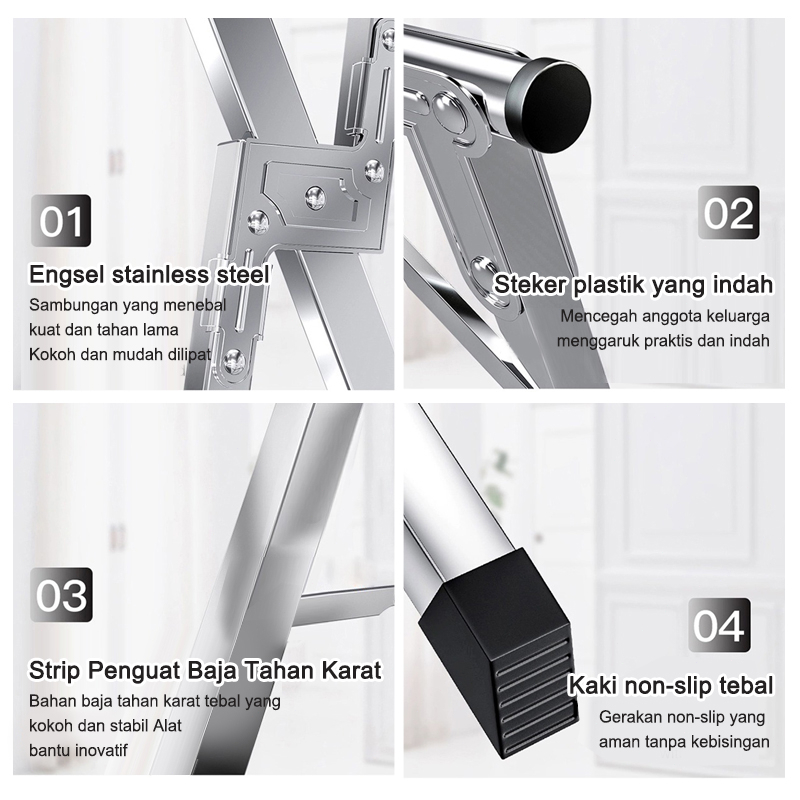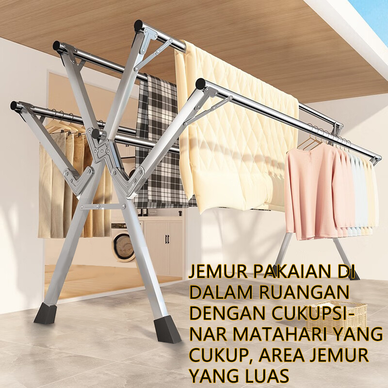 Jemuran Baju Lipat 5 Tiang Stainless Steel Dengan Roda - Daya Tahan Beban Sangat Kuat Kokoh Anti Karat 240cm
