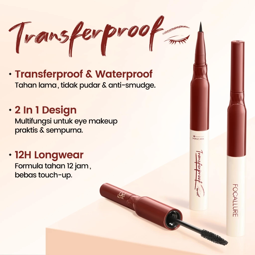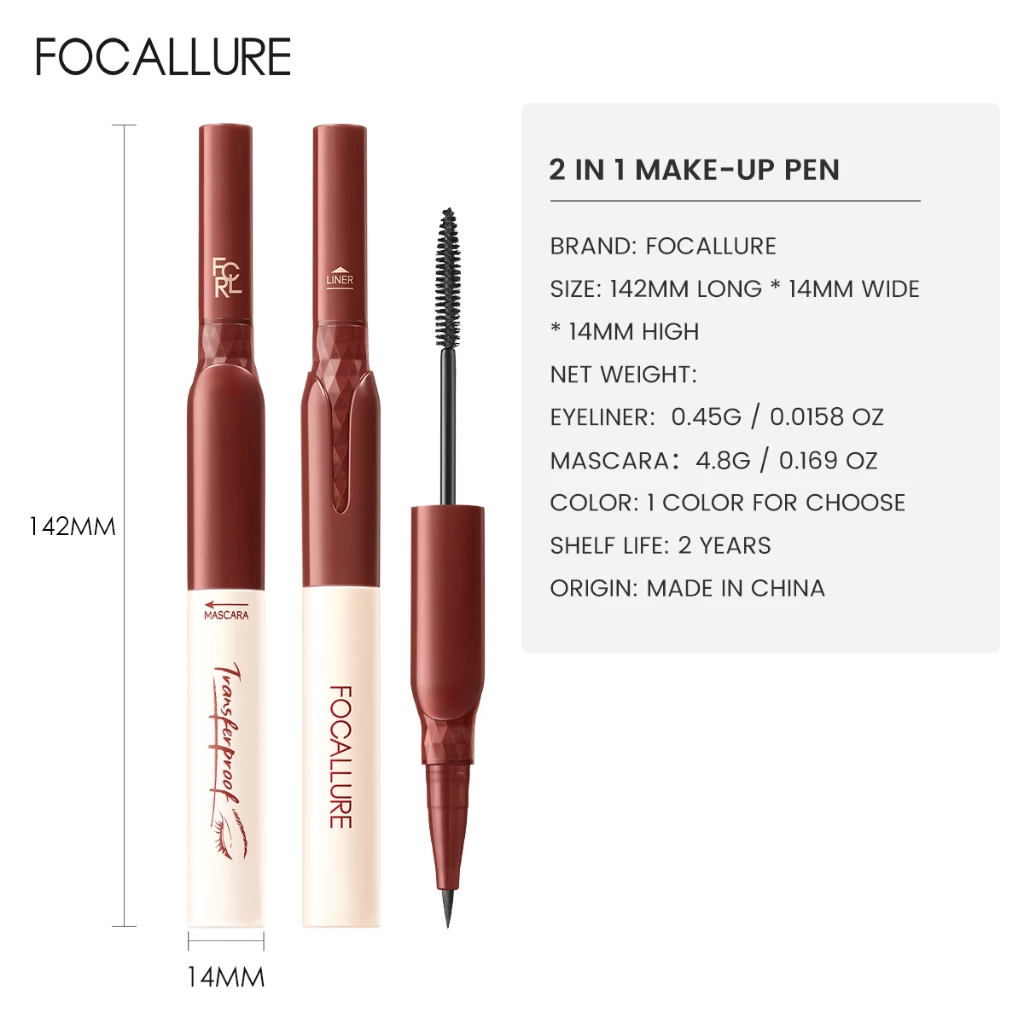 FOCALLURE 2-In-1 Waterproof Eyeliner & Mascara Longwear Precision Volume #TransferproofHero