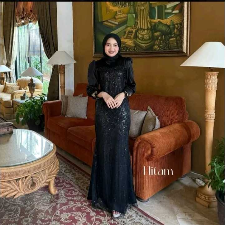 Gamis Kondangan Wanita Remaja Model Press Body Bahan Satin Mix Brukat Premium Warna Mahogany S-XXL