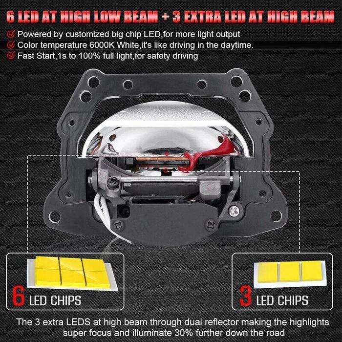 BILED WST 2.5/3 Inci DC 12V 120W 40000LM Projector LED Lens Projie HighBeam 55W LowBeam 50W - 2.5 Inci (1Pcs)