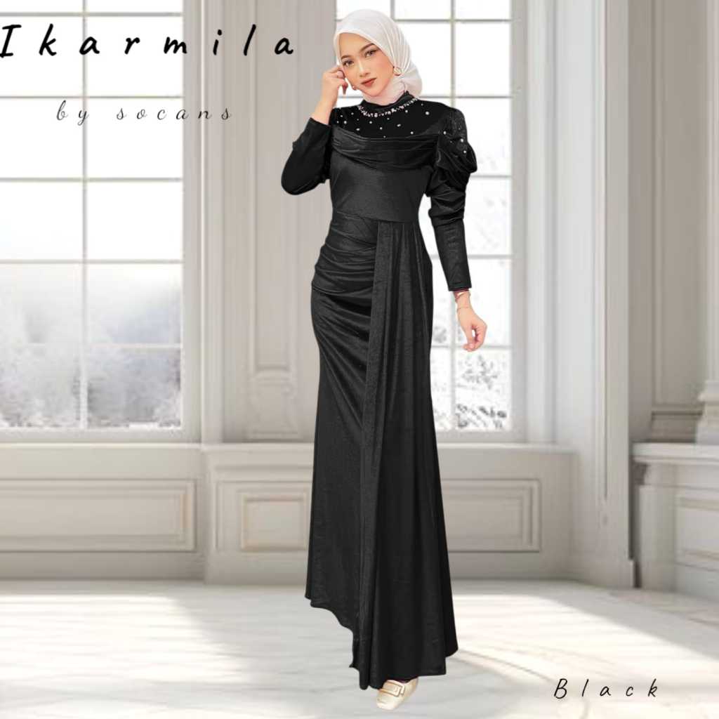 iKARMILA gamis mermaid bludru et mutiara utk pesta kondangan lamaran wisuda seragam bridesmaid