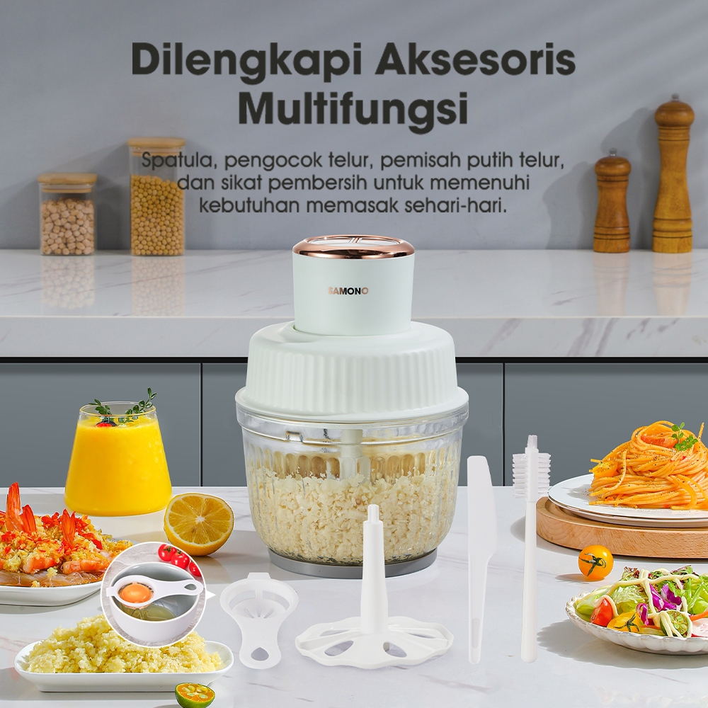 SAMONO Food Chopper 3 Speeds Multifungsi Wadah Kaca 2.5 Liter Low Watt SW-CG400 Garansi 1 Tahun