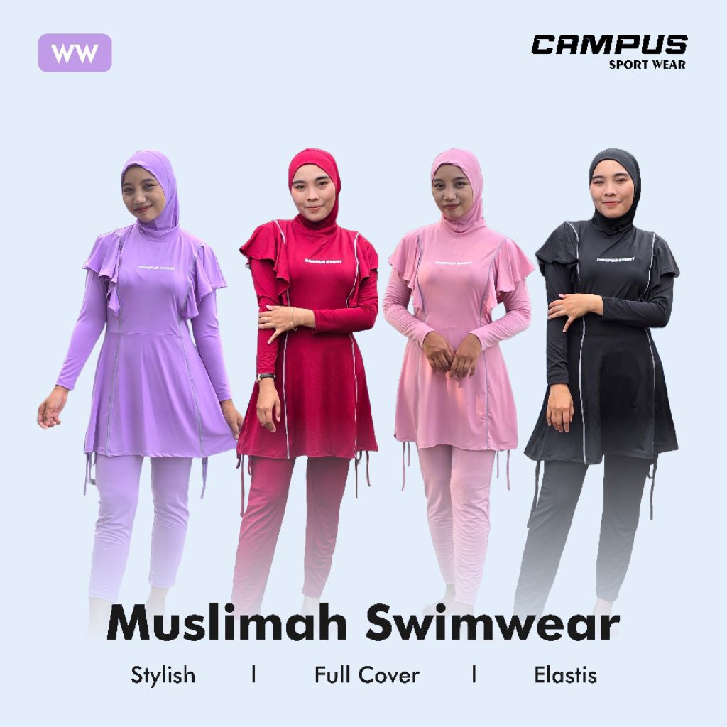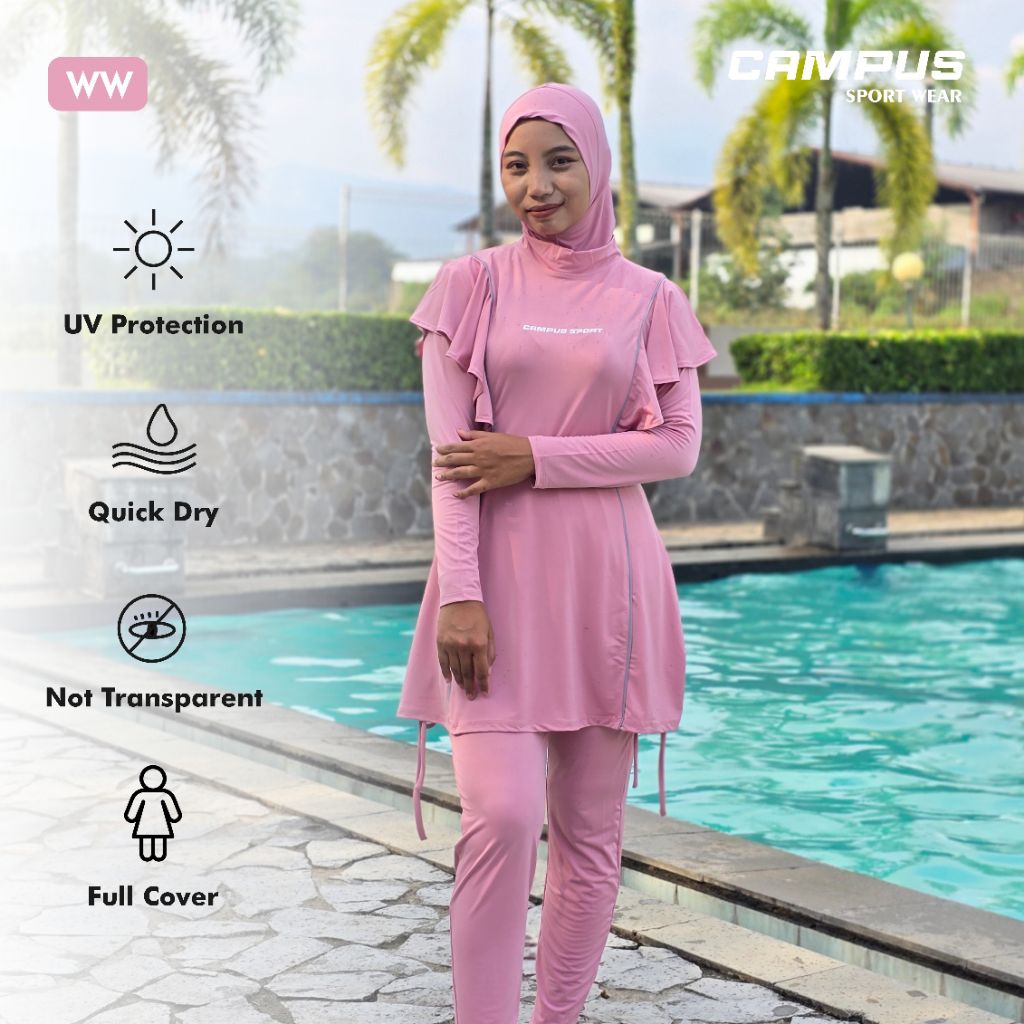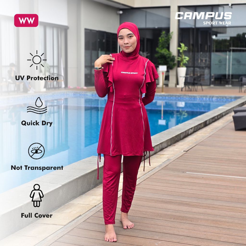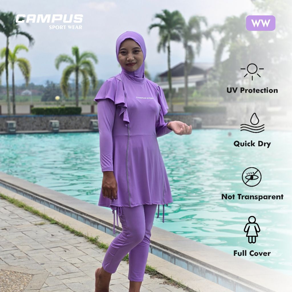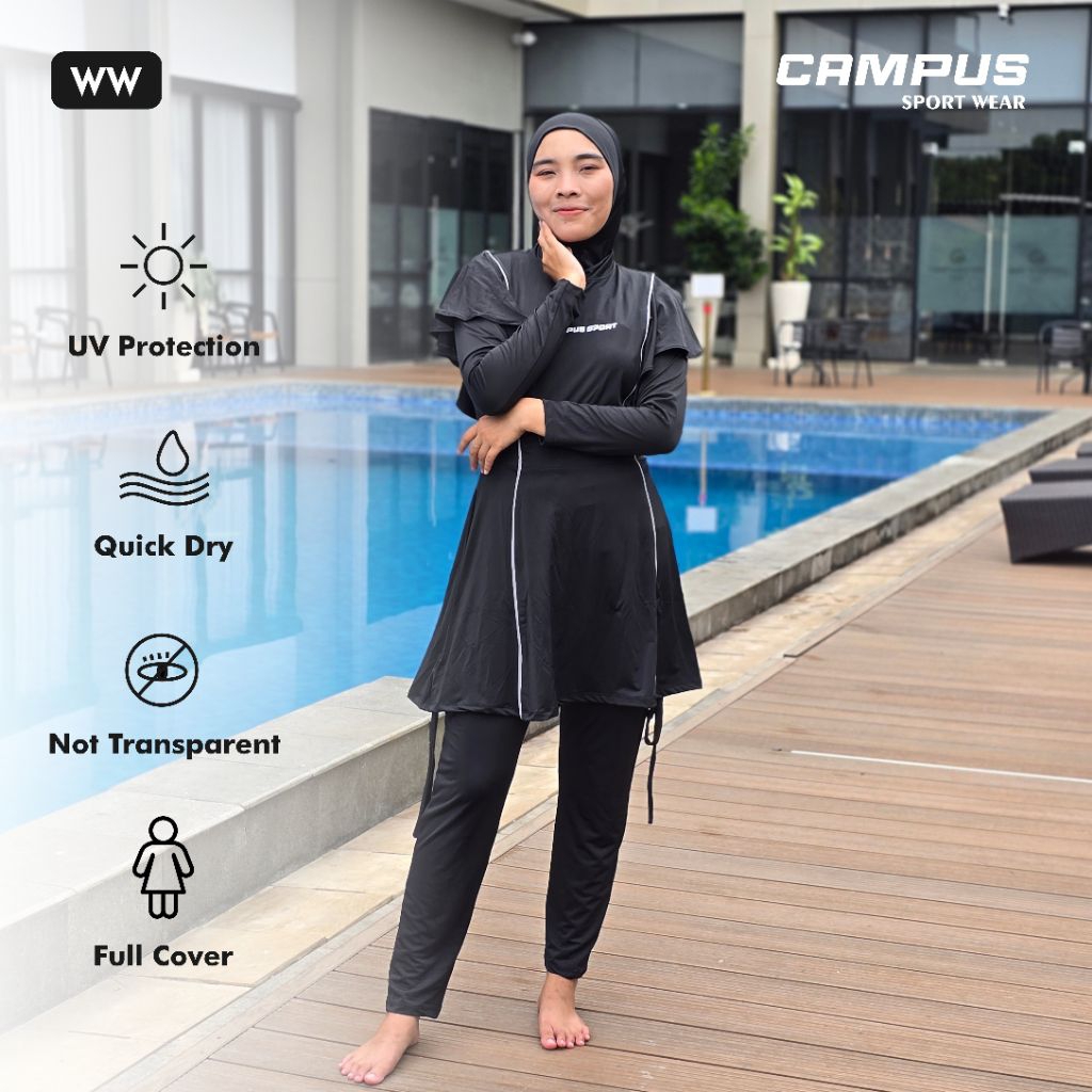 WW - Baju Renang Wanita Muslimah Dewasa Syar'i 3in1 Full Cover, Hijab Include by Campus Sport Wear