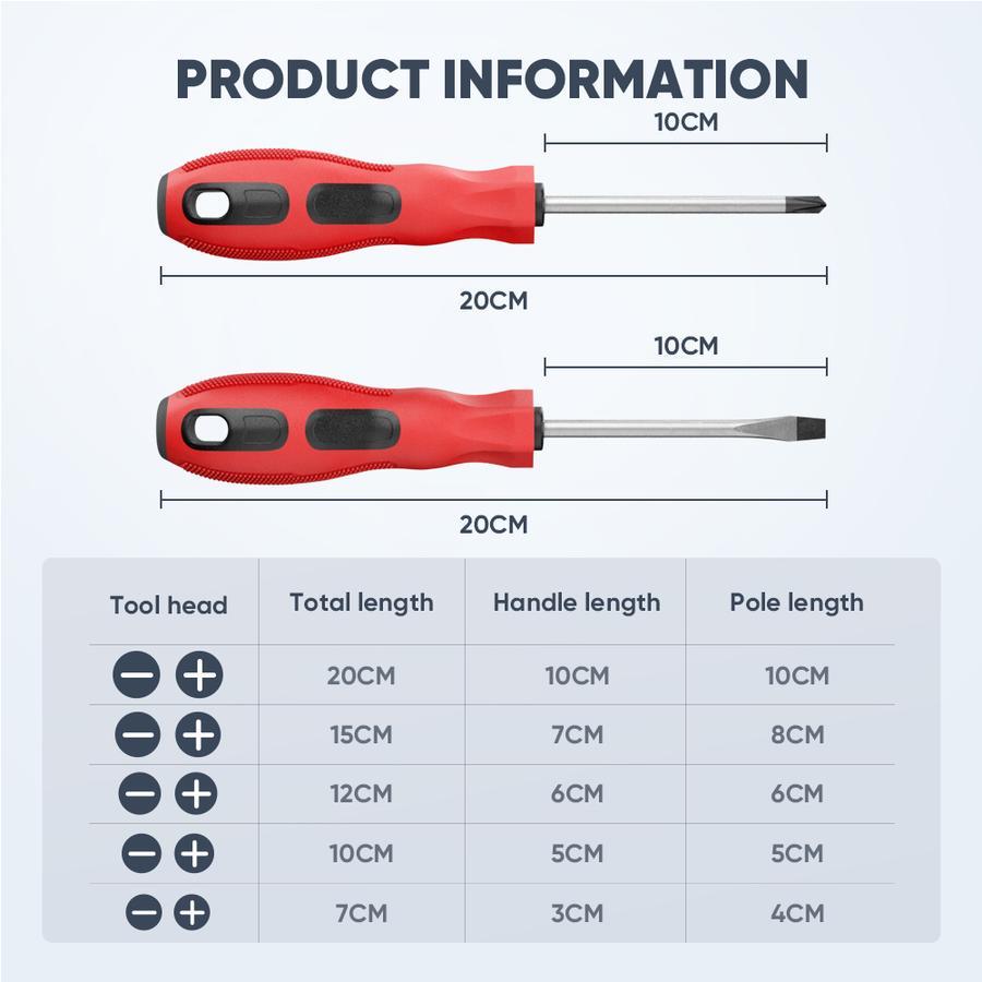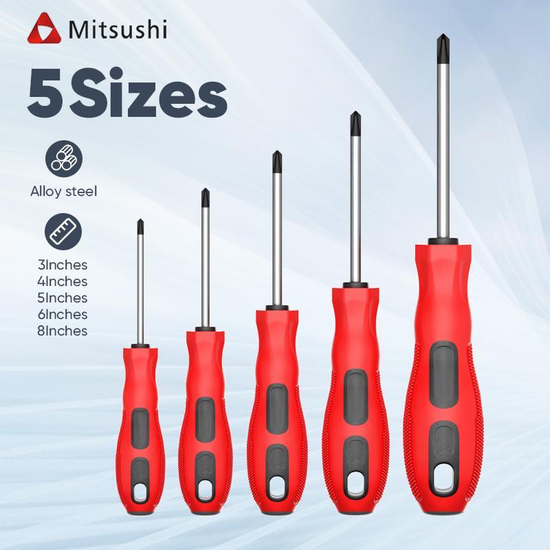 Mitsushi Obeng Plus Minus Magnet Screwdriver Sets Alat Perkakas Obeng Minus Set Berbagai Ukuran CR-V Anti Selip 4/6/8" inch Obeng Gagang Karet Nyaman Digunakan