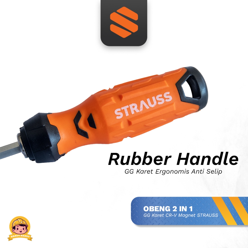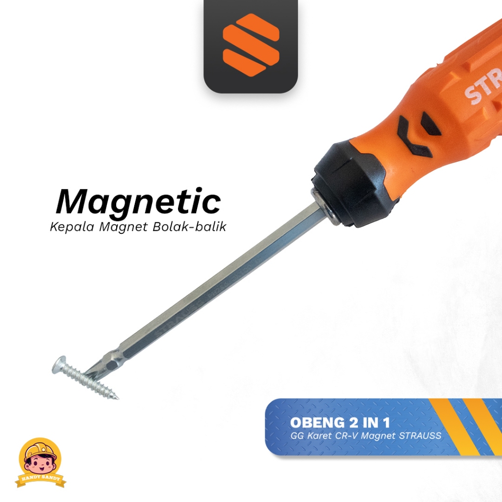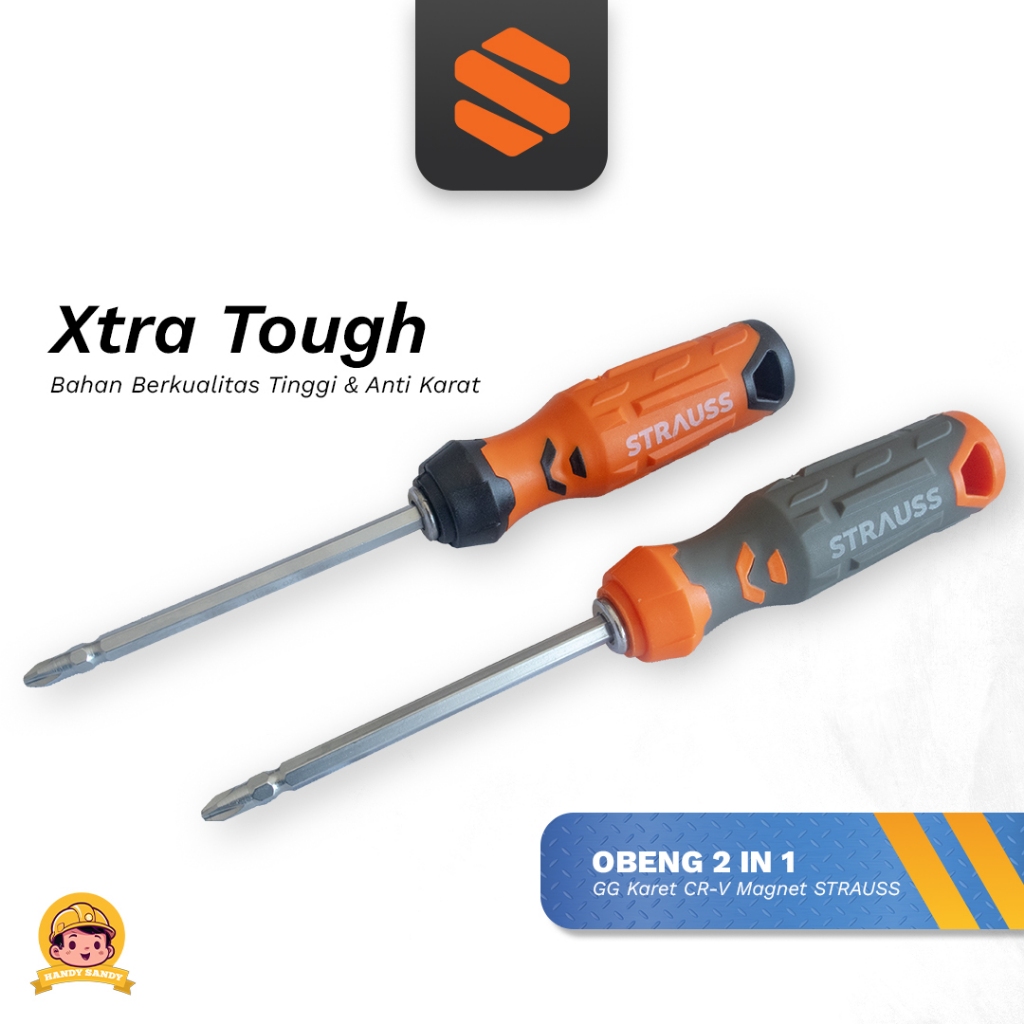 STRAUSS Obeng Bolak-balik 2 in 1 Gagang Karet Anti Selip | Anti Karat & Extra Kuat | Obeng Plus - Obeng Minus