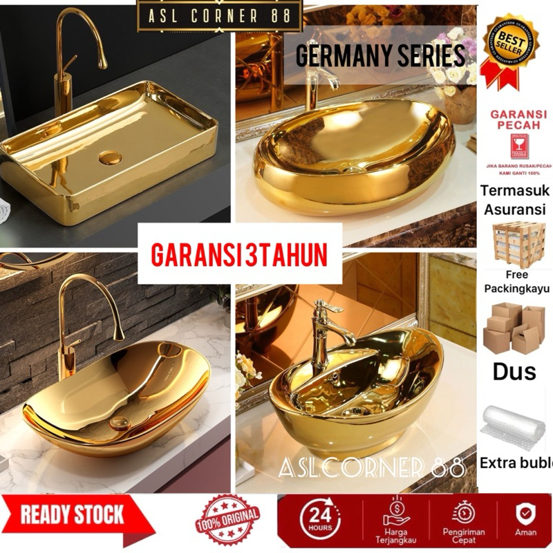 ⭐️FREE KERAN ACCES⭐️Washtafel Meja Kamar Mandi kuningan mengkilap/Set Lengkap Washtafel Cuci Muka Meja kuningan mengkilap Kilat