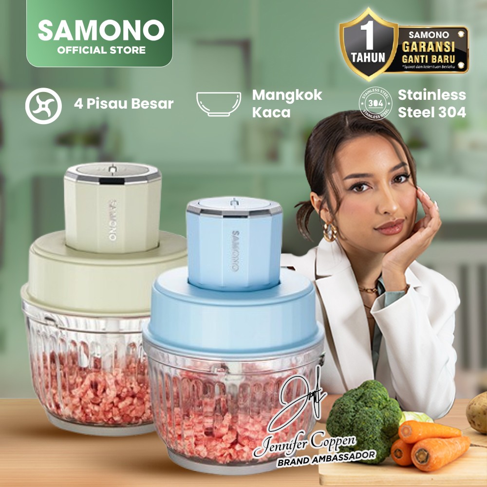 SAMONO Best Seller Chopper Low Watt Garansi Wadah Kaca Penghalus Daging Bumbu Buah MPASI Meat Grinder Food Processor Ble