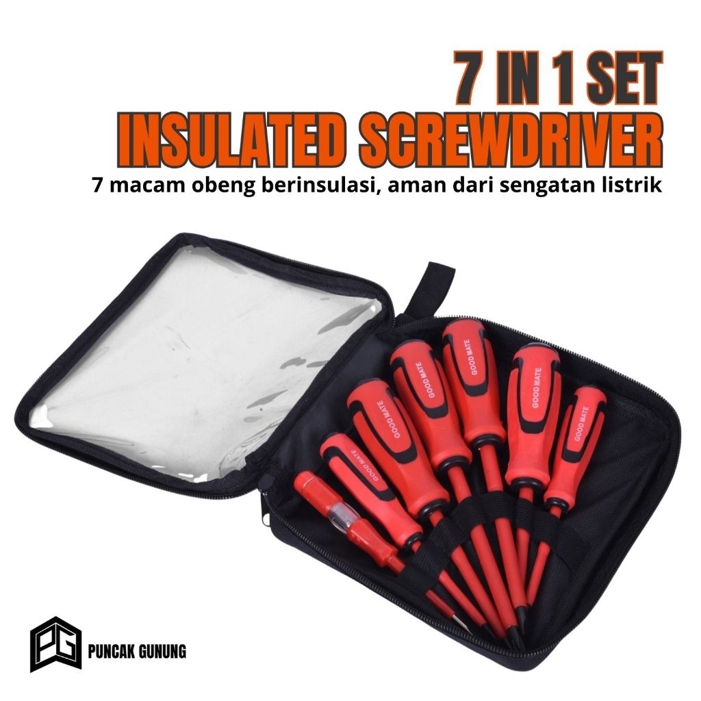 Obeng Set 7 in 1 Insulated Screwdriver Anti Listrik Gagang Karet Aman Perkakas + Tespen - G6A7