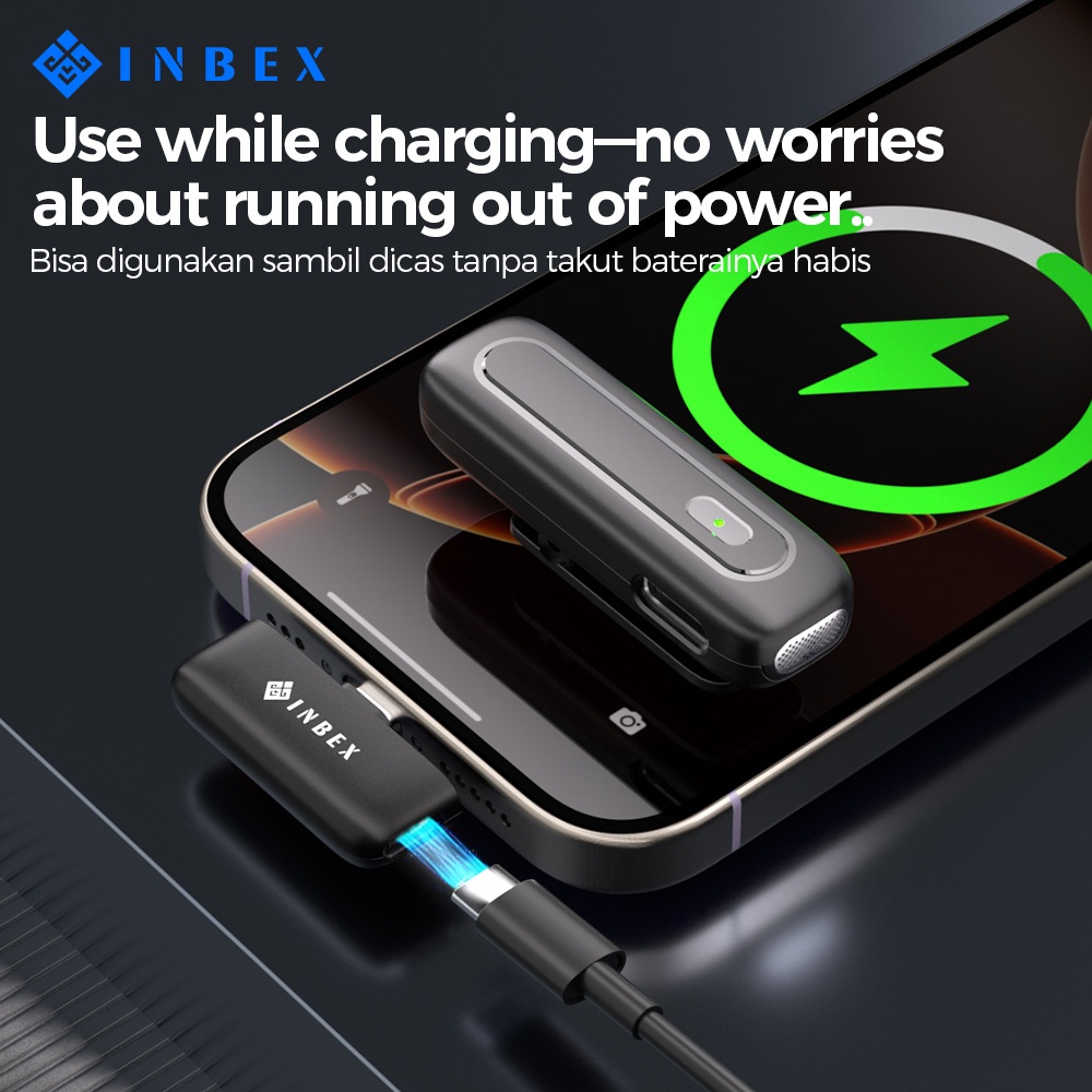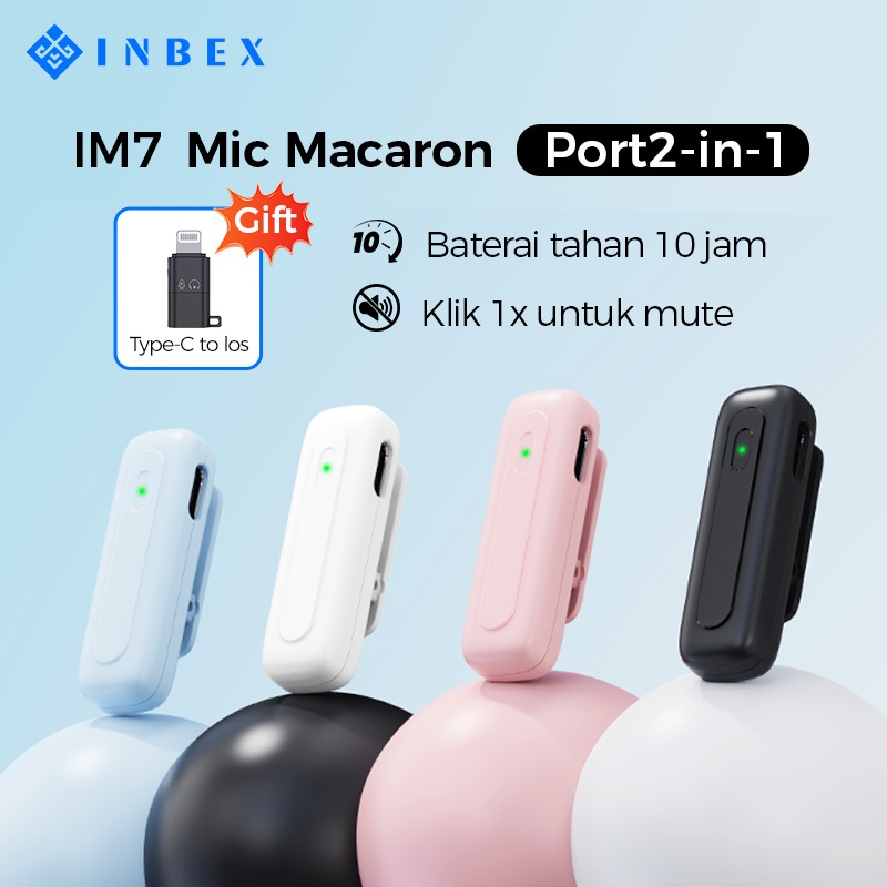INBEX IM7 1in2 Wireless Lavalier Microphone Macaron 360° Omnidirectional DSP Chip One-Touch Mute 2.4G Low-Latency 9 ms &