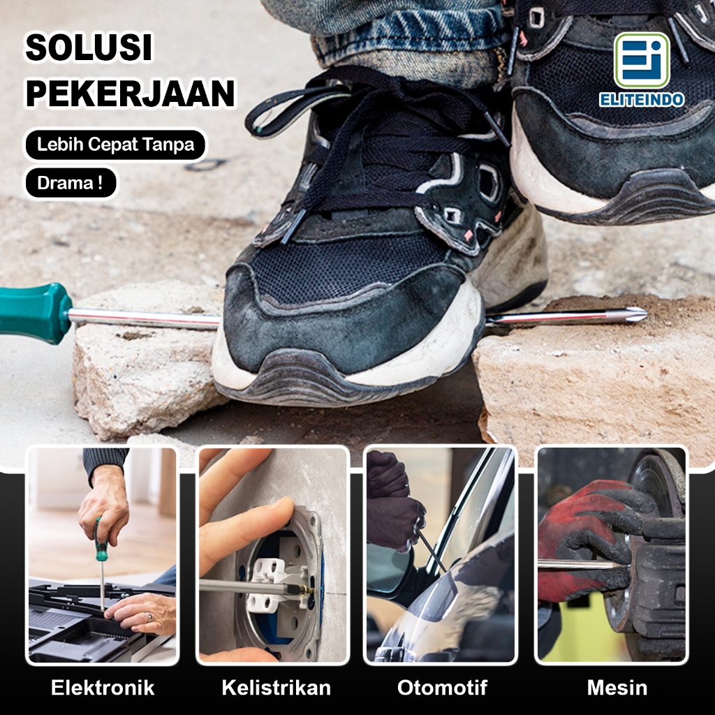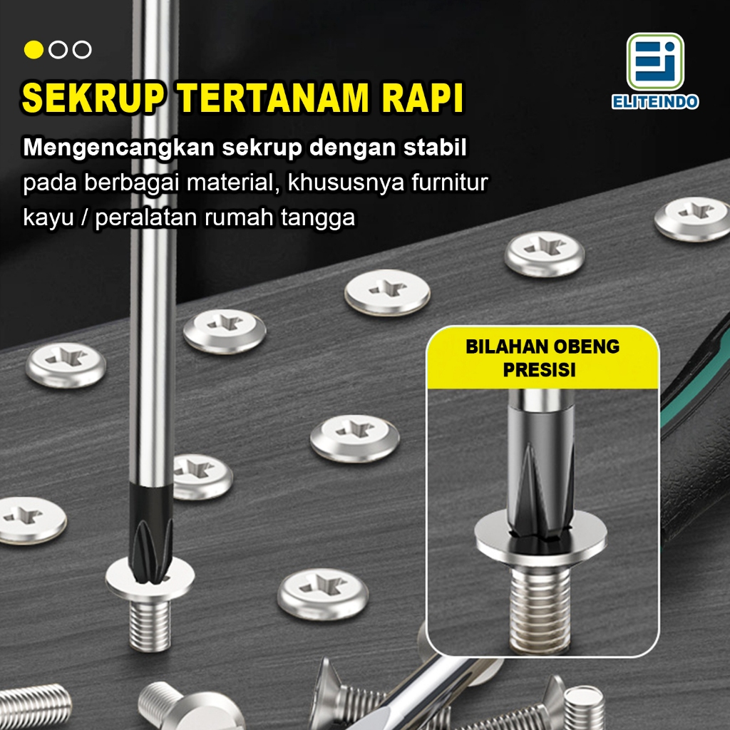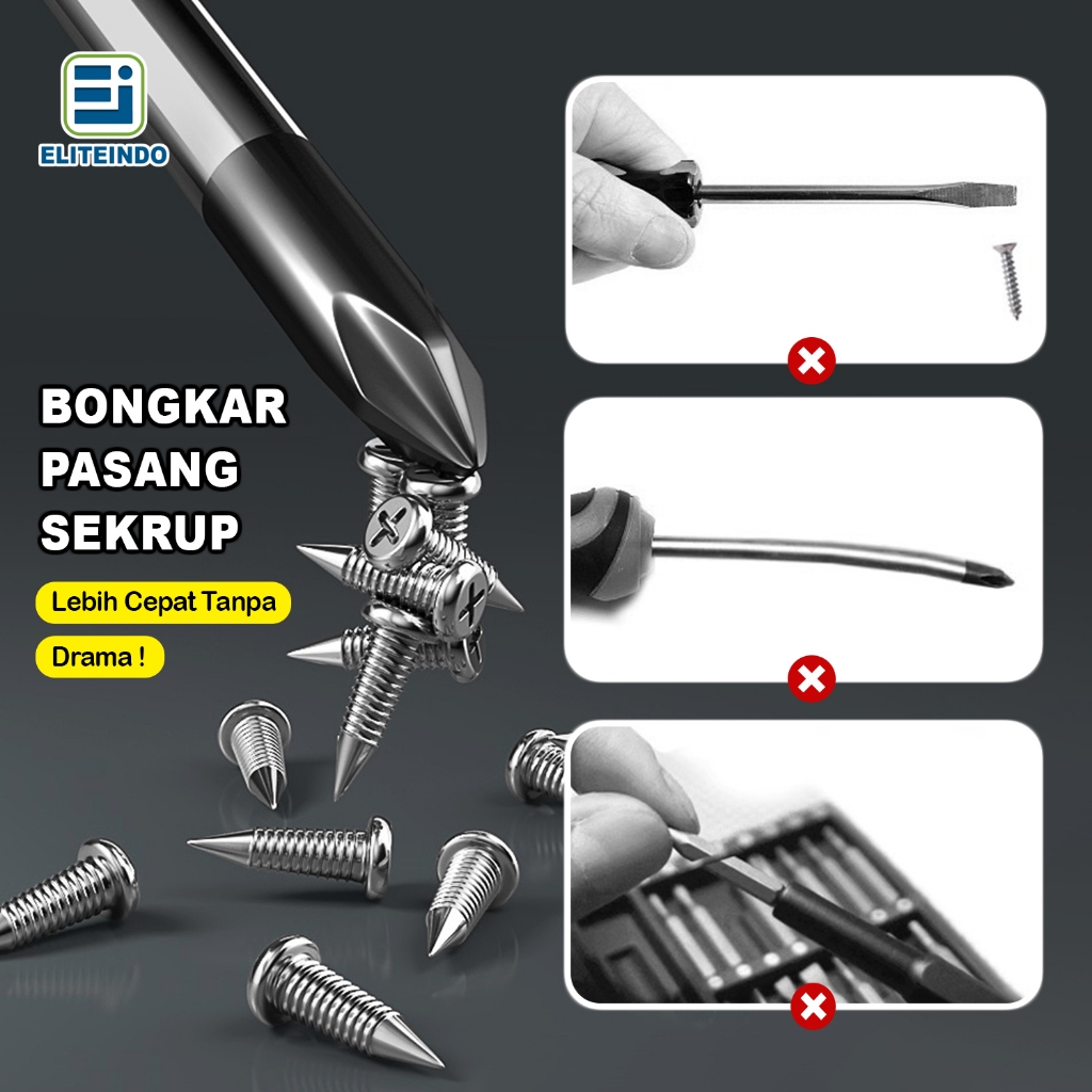 ELITEINDO Obeng Pozidriv Plus + Screwdriver Magnet Berkualitas Gagang Karet Anti Slip Perkakas Kuat