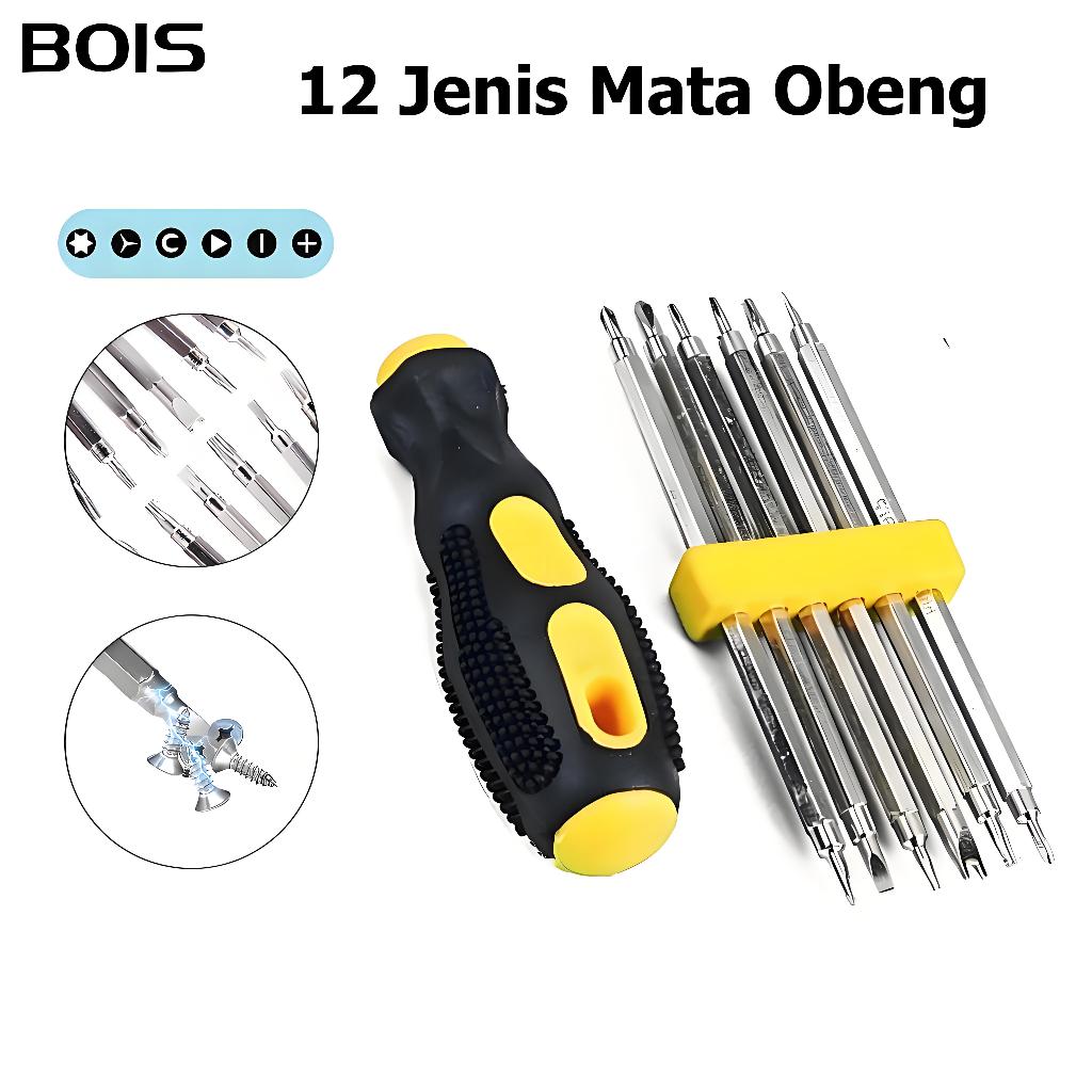 Bois Oval Obeng 6 In 1 set Multi Fungs Obeng Set Obeng Bolak Balik 12 Mata Obeng