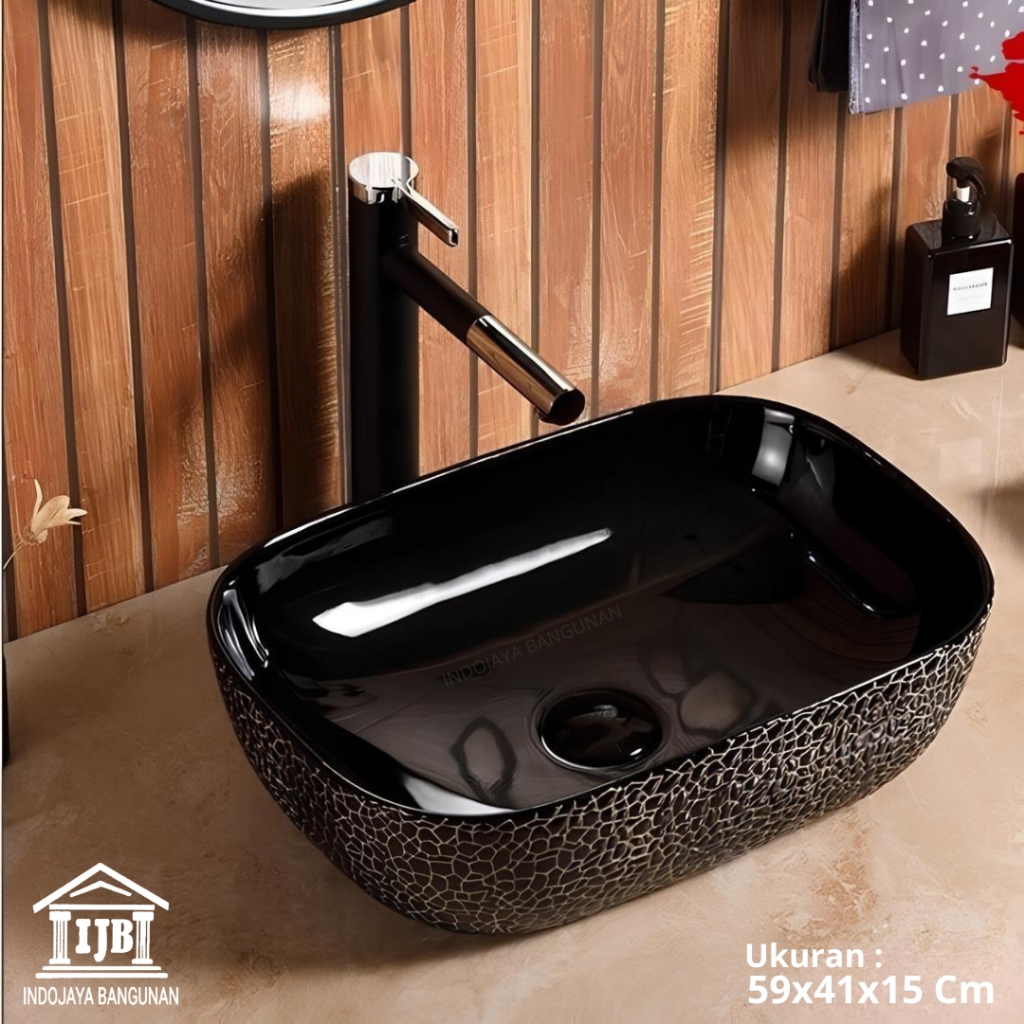 Wastafel Cantik Keramik Putih Hitam Meja atau Gantung : Putih Bulat , Oval , Kotak