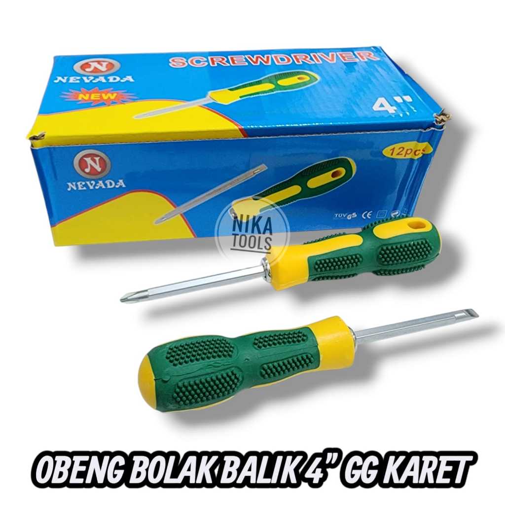 [12 PCS] Obeng Bolak Balik Listrik Gagang Karet 4 " Inch