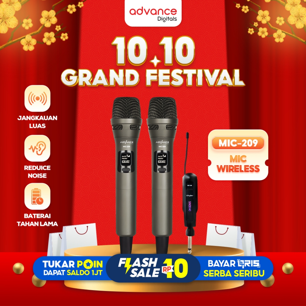 Advance MIC-209 Professional Dual Microphone Wireless Jack 6,5mm Jangkauan 20-30m Garansi 1 Tahun