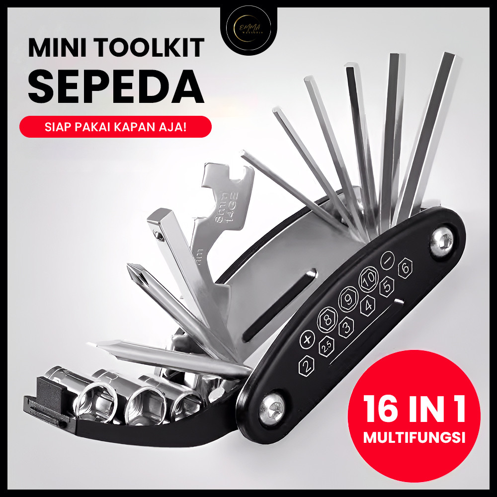 EM Kunci sepeda set 16 in 1 mini tool kit lipat kunci L obeng socket