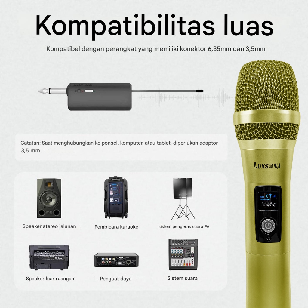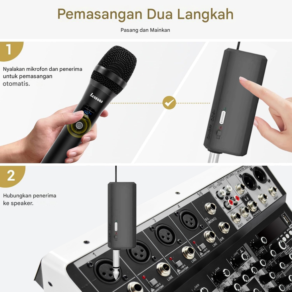 LUXSONA Professional Wireless Mic Karaoke Meeting / Hi-Fi Besar Mikropon UHF Tanpa Kabel Rechargeable Dynamic Mic