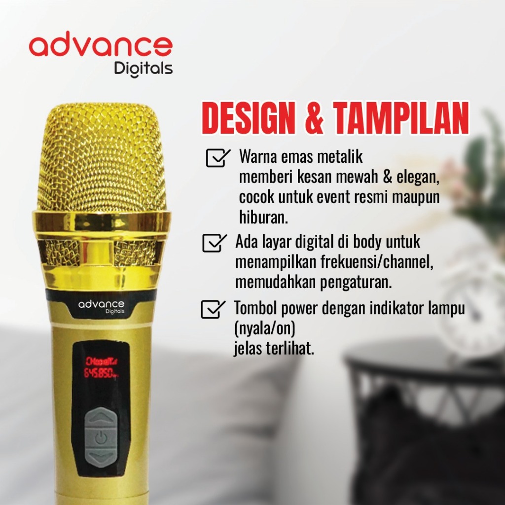 Advance MIC-206 Double Microphone Wireless UHF Recharger Bisa untuk Souncard/Speaker Garansi 1 Tahun