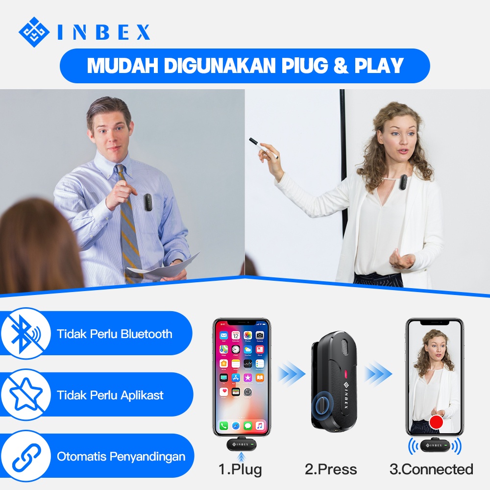 ✨MIC 30 PERSENOFF✨ INBEX Wireless Microphone Lavalier Microphone Bluetooth youtuber/Nirkabel Mic Clip on Audio Video Microphon