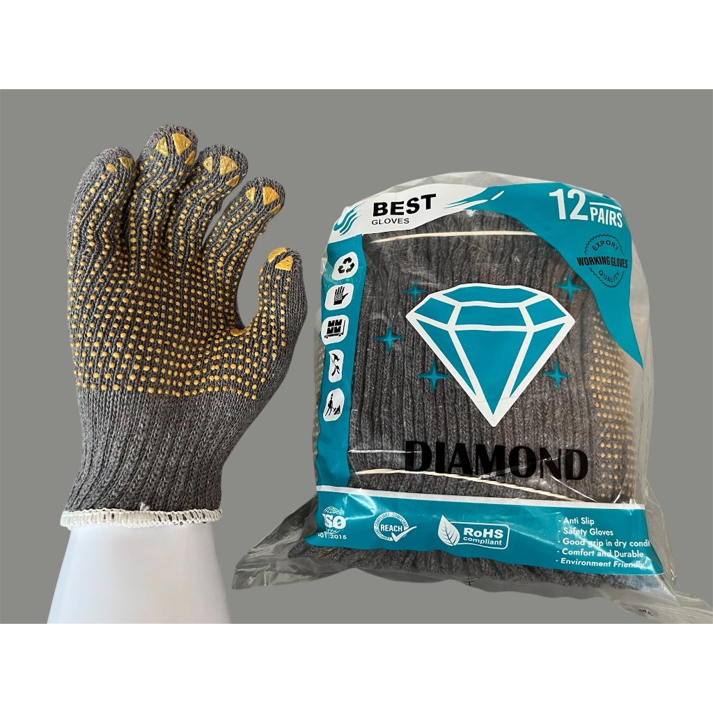 Sarung Tangan Benang 4 Abu-Abu Bintik Kuning