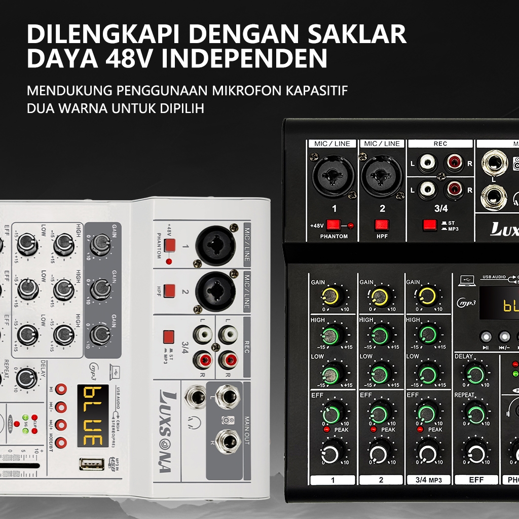 LUXSONA Mixer 4 Channel Audio Mixer Mini Soundcard USB Bluetooth mixer murah cuci gudang mendukung peralatan Bluetooth/M