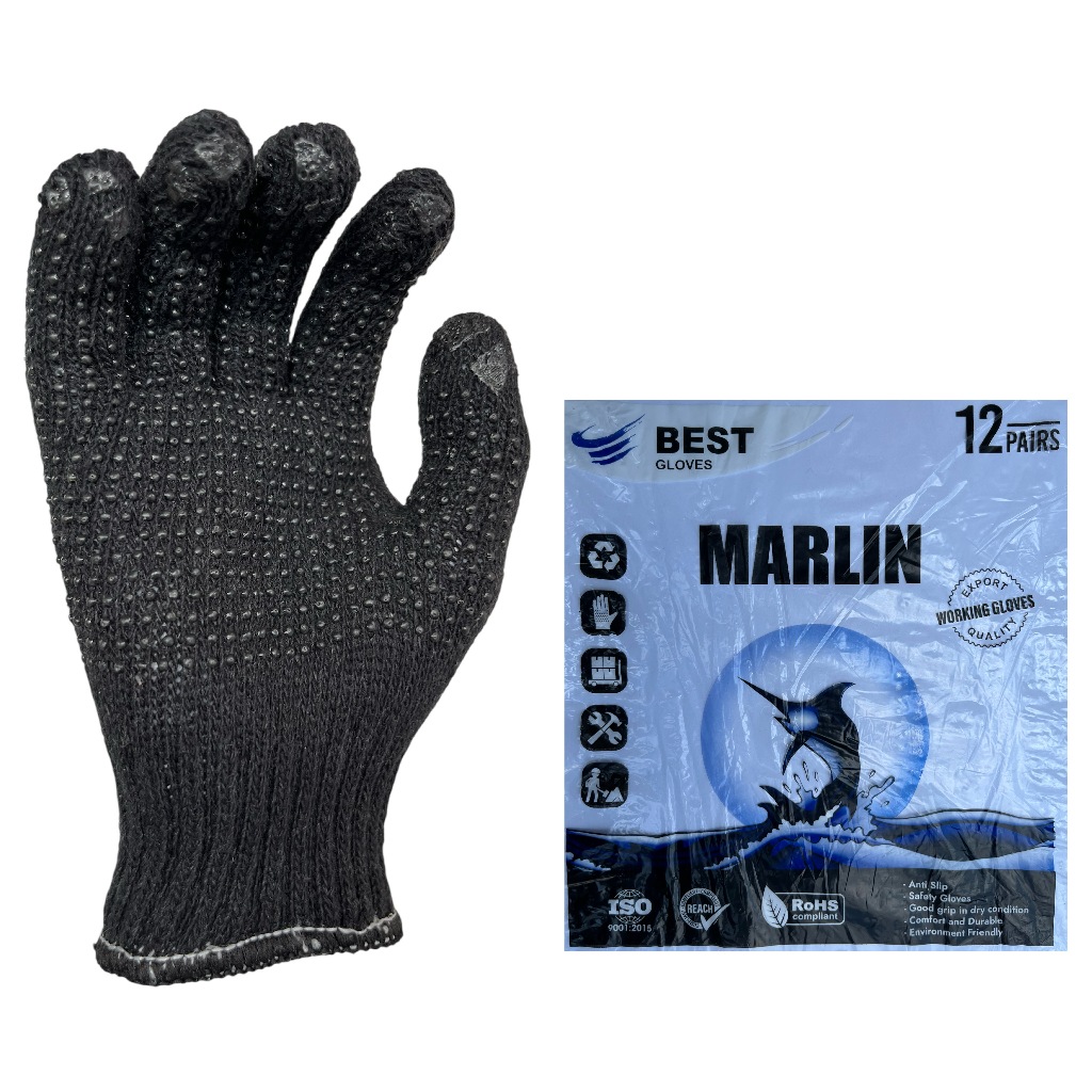 Sarung Tangan Benang Hitam Bintik Hitam 12 pasang
