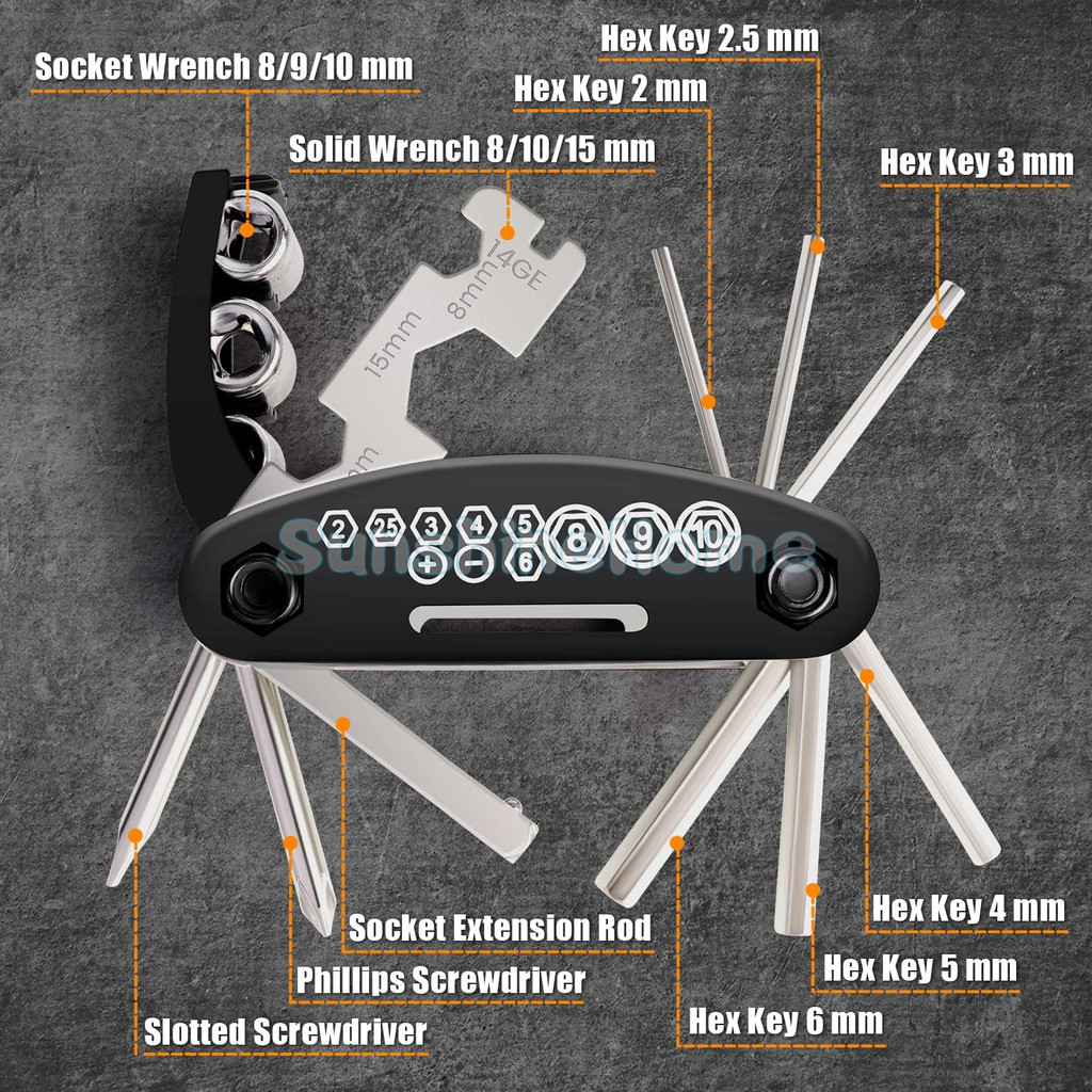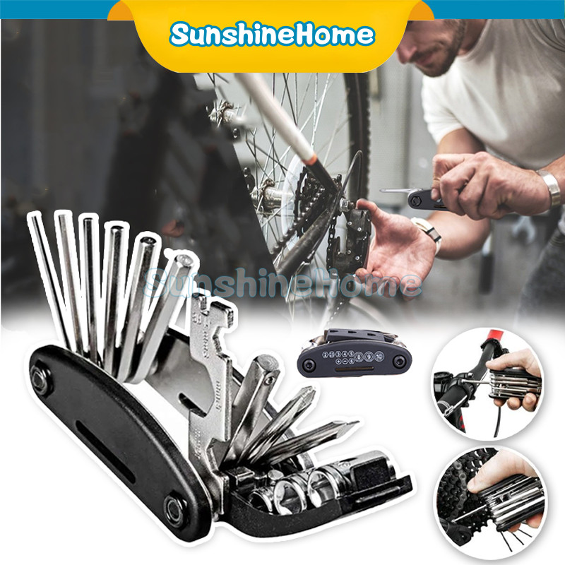 Kunci Shock Sepeda 16Pcs Tools Kunci Obeng 16in1 Lipat Sepeda Tools Serbaguna