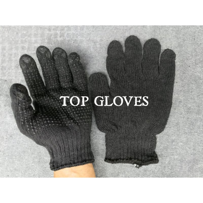 Sarung Tangan Benang Hitam Bintik Hitam (12 pasang)
