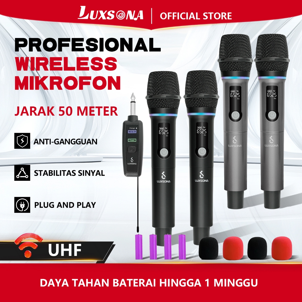 LUXSONA Wireless Mic RGB Light Portable display LED UHF Wireless Mikropon Lock Frekuensi Receiver System MIC