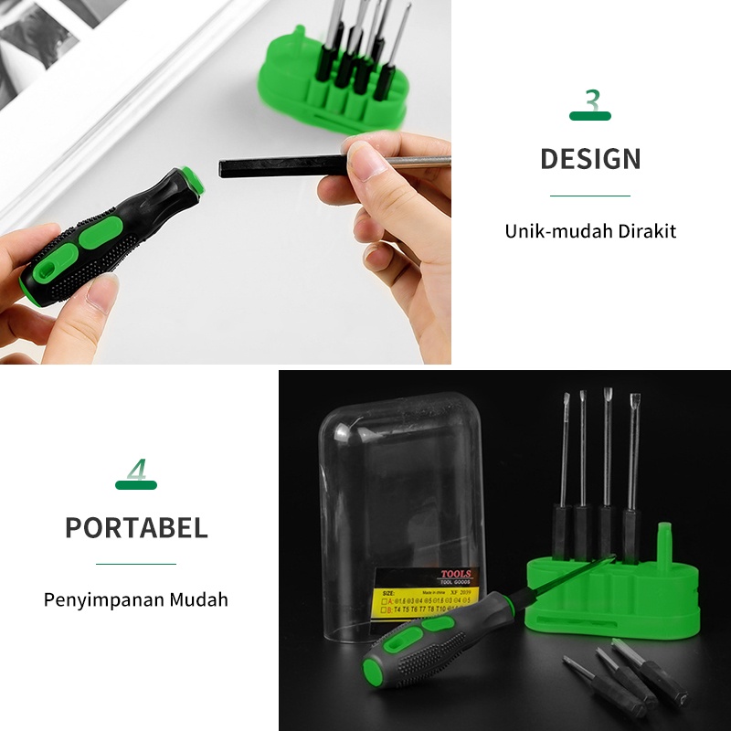ISKU 10 in 1 Obeng/ Obeng Set Kunci Shock Set Multifunction Screwdriver Obeng Serbaguna Kunci Set Perkaka Set Perkakas Rumah