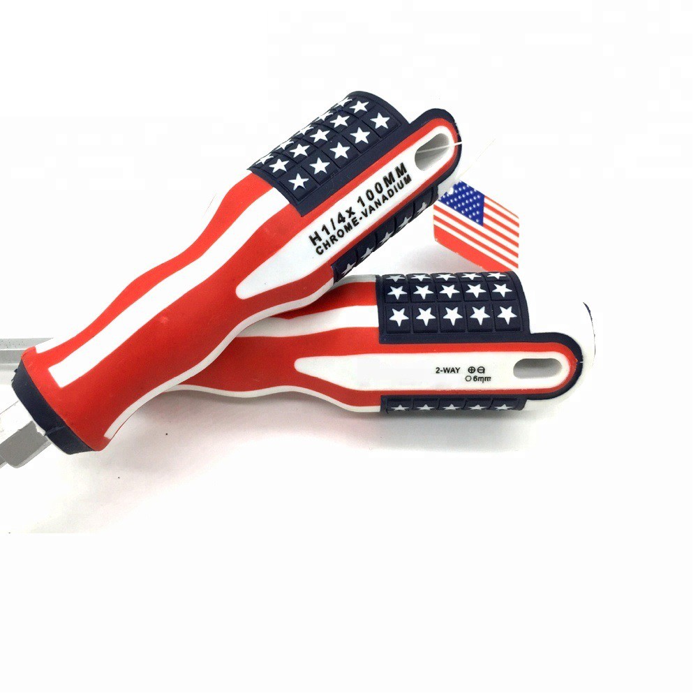 Obeng Magnet Amerika Bolak Balik Gagang Karet 2IN1 8 Inch 2 Way Screwdriver Plus Minus Motif Obeng Kembang Serbaguna