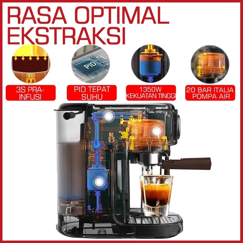 LAHOME 5 in 1HOT & COLD Brew Coffee Machine Espresso Maker Smart Pre-infusion Professional 20 Bar Mesin Pembuat Kopi Esp